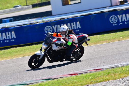 Ho voluto fare questa esperienza per provare l’emozione di guida senza le inibizioni e le solite paure della strada, con un asfalto perfetto,curve ampie e aperte, nessun pedone, nessun camion…E lì mi sono molto divertita! La mia bella è stata bravissima, tenuta sempre, come dico io, “impiccata” sopra i 9.000 giri, ha saputo regalarmi una bella esperienza per il mio battesimo della pista. Parlando di belle sensazioni, i terminali LeoVince aftermarket hanno un sound letteralmente da urlo! Tra i cordoli è venuta fuori una parte di me, quella energica e un po’ rabbiosa, che trova nell’espressione del motore un’ottima alleata. In strada,come nella quotidianità, sono prudente, sono attenta a come mi pongo in base a chi ho davanti, così come cerco di calibrare i km/h tenendo conto dei pericoli. In pista, invece, ho potuto dare il 100%, ho potuto sperimentare un’ espressione di me, personale e motociclistica, totale e senza paure. Certo, era la mia prima volta e non ho regalato una performance da moto mondiale, anche perché l’assetto della FZ6 è prettamente stradale, ma è stato comunque il MIO gran premio!