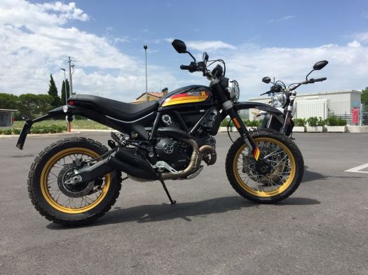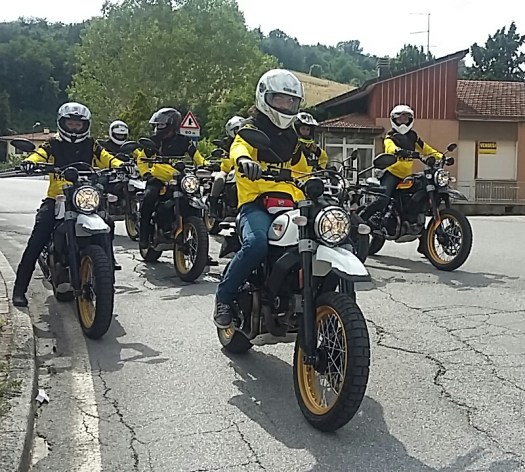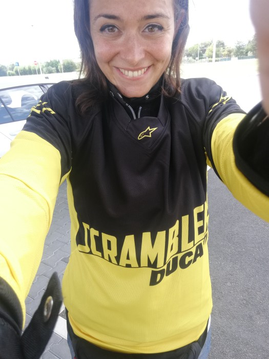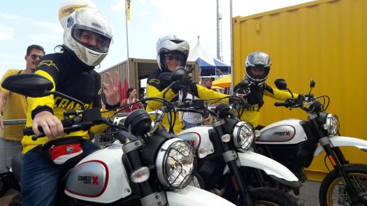 L’evento in se è stato molto divertente, ho potuto conoscere le altre vincitrici con cui si è creato subito un bel clima. La giornata centrale di questa tre giorni era il sabato mattina, quando siamo arrivate alla Land Of Joy di Scrambler Ducati dove ci aspettavano una decina di Scrambler Desert Sled, l’ultima nata nella grande famiglia delle Scrambler. Ferruccio, Events Manager di Ducati, ci regala delle bellissime e giallissime maglie Ducati Scrambler da indossare sopra la giacca.