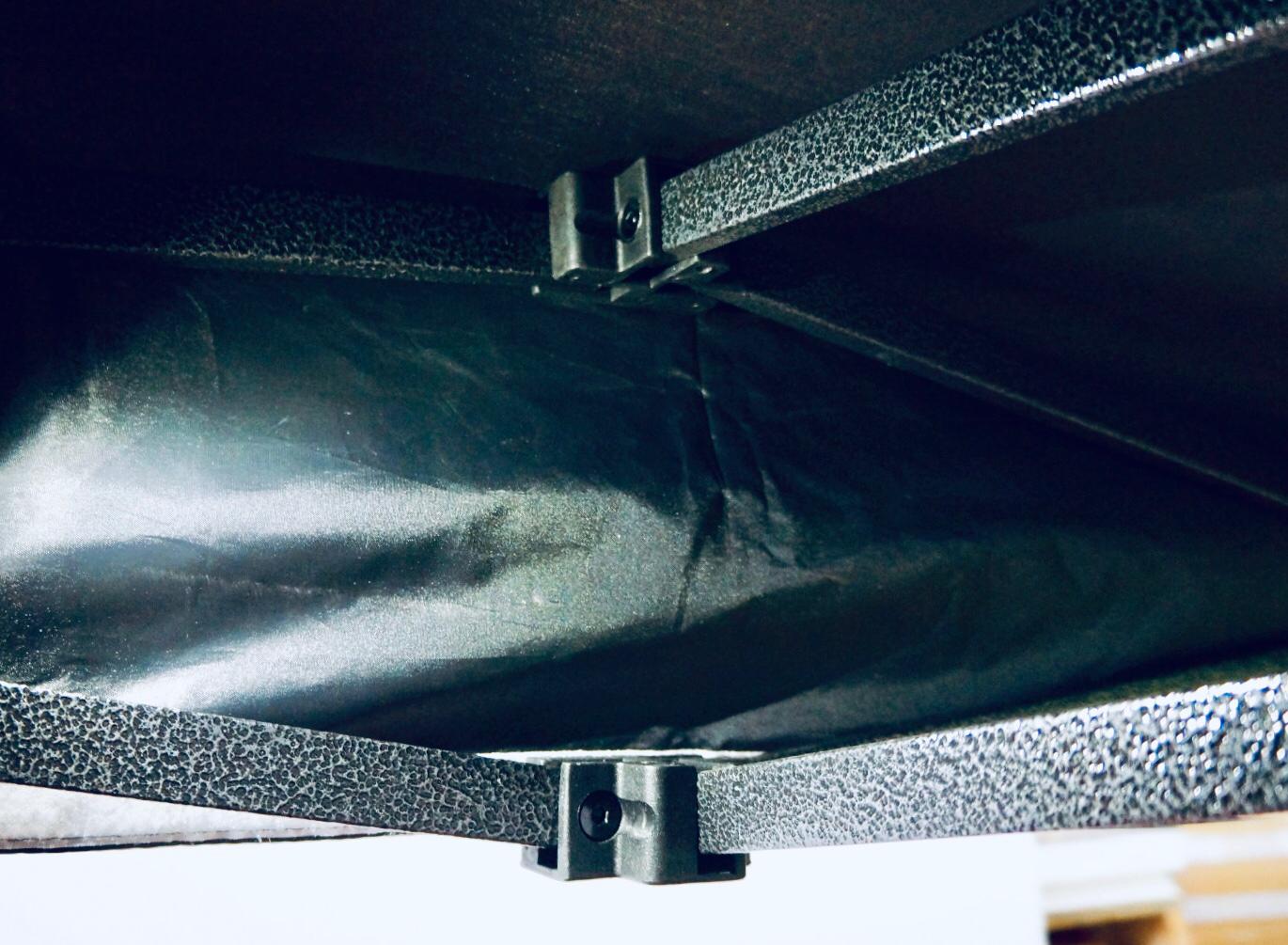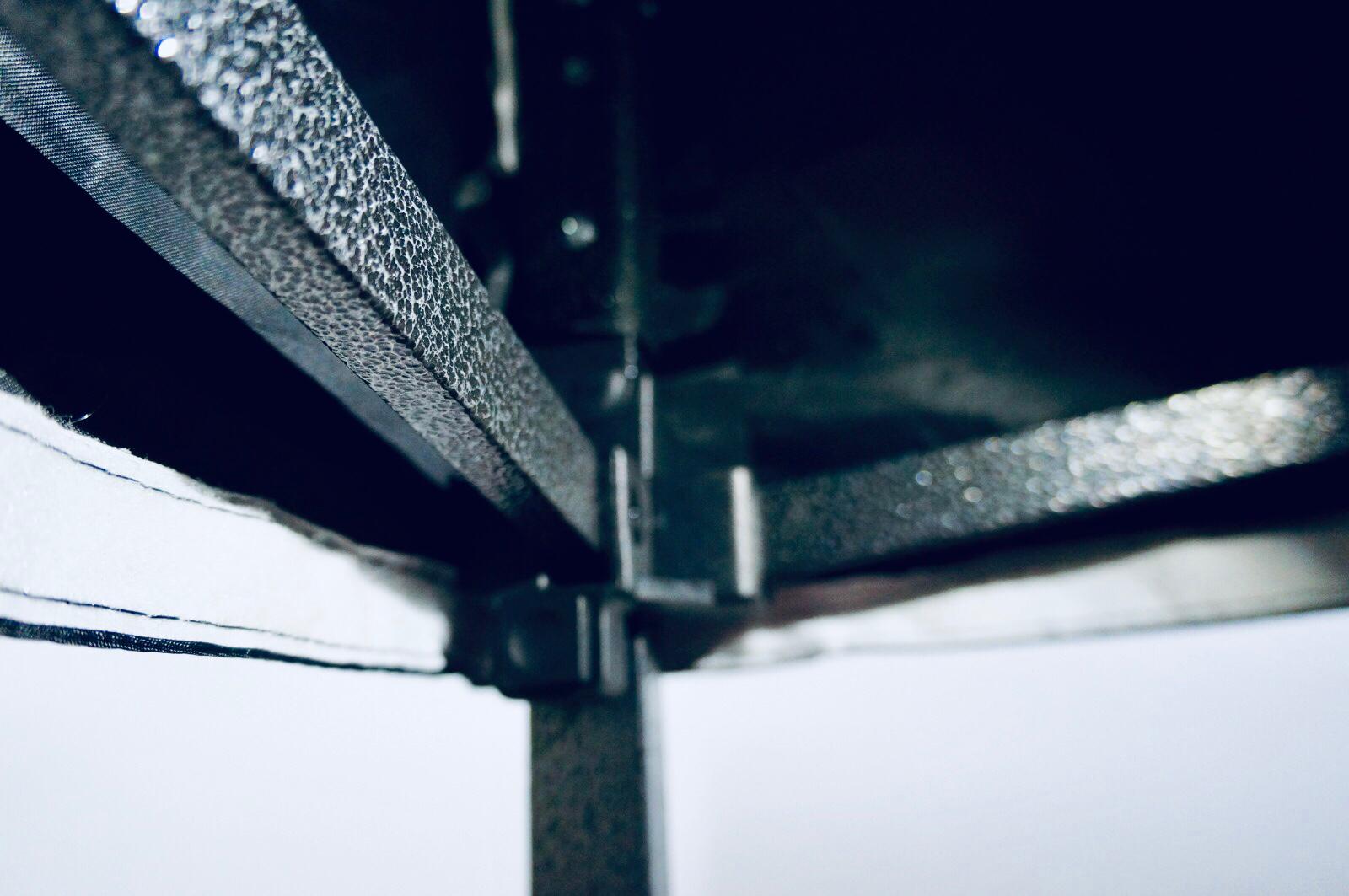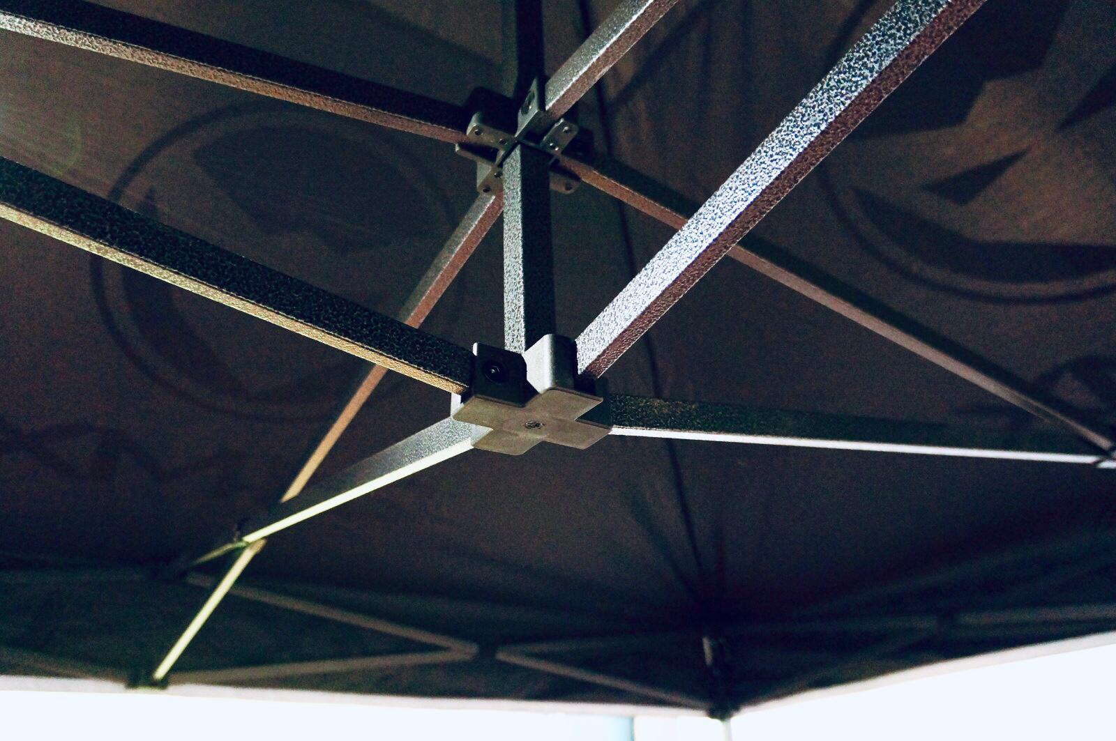 Una volta aperto e bloccato, si può alzare in base elle esigenze, grazie ai perni regolabili. Se lo desiderate, potete anche aggiungere le tre pareti laterali, si attaccano facilmente alla copertura superiore e al telaio con delle chiusure in velcro, facili e veloci da attaccare e staccare.
