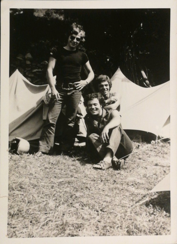 Papà era un ragazzo di strada, per davvero, fisicamente simile a Carlo Verdone, jeans a zampa di elefante, ironico, intelligente e amante della libertà. Ha vissuto in Canada per scrivere la sua tesi di laurea sui pellerossa e a Londra per imparare la lingua, ma soprattutto, cosa che interessa a noi in questo momento, si è girato l’Europa in moto con i suoi amici motociclisti, una banda di scalmanati che si chiamava I Giovani Lupi…..sì, era il nome della sua banda. In molti avevano soprannominato il gruppo I Caimani in una accezione purtroppo negativa e dispregiativa: lui e i suoi amici erano spesso considerati i classici motociclisti brutti sporchi e cattivi, quelli che cercano e danno rogne, cosa davvero lontana dalla realtà.