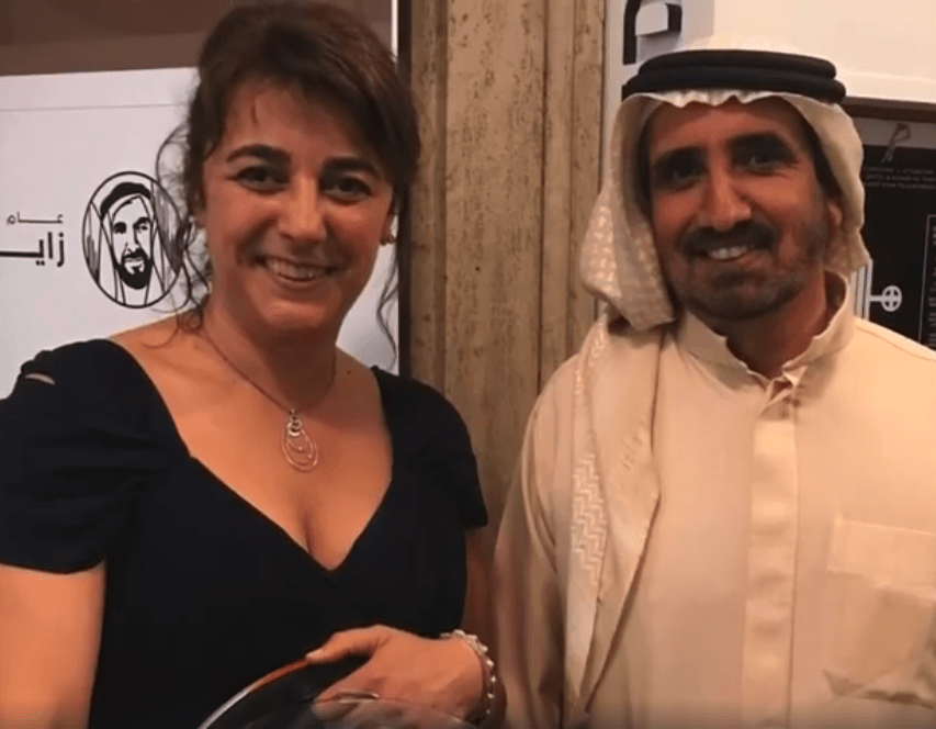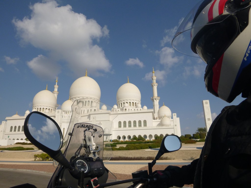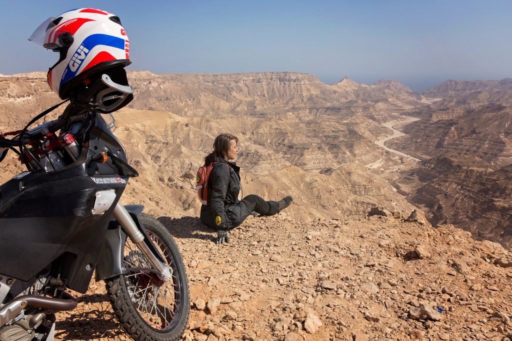 Ma allora mi spiii 🙂 Ad ottobre 2017 ricevetti una strana mail che mi diceva che ero stata invitata dal Awad bin sheika Mejerin a raccontare a Dubai il mio viaggio. Veniva aggiunto che vitto, alloggio e volo erano a carico dallo sceicco in persona. Ovviamente ho cestinato la mail: credevo fosse un fake. Poi ho sentito una vocina che mi rammentava di Lois Pryce (un’amica inglese viaggiatrice). La contattai subito e mi confermò che 2 anni prima era stata invitata anche lei. La mail era quindi autentica. Accettai. L’esperienza è stata allucinante, incredibile. Ho avuto l’onore di conoscere un uomo di una bontà estrema, un viaggiatore arabo che crede nei viaggiatori. Lui ritiene che i viaggiatori siano emblema di pace. Il suo intento é di far incontrare i viaggiatori e far loro condividere del tempo piacevole assieme, al fine di ampliare la conoscenza tra popoli e culture completamente lontane.Va da sé che giunta a Dubai decisi di allungare il viaggio e rimasi due mesi girovagando in moto da sola tra Emirati Arabi ed Oman. (14.000 km)