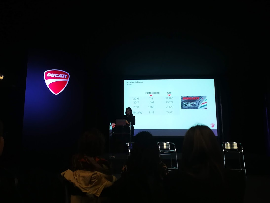 Riparto di nuovo per lavoro. Mi metto un bel vestito giallo, prendo la macchina aziendale e vado a Borgo Panigale, in Ducati per un evento.